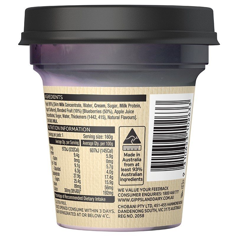 Gippsland Blueberry Twist Yogurt 160GM