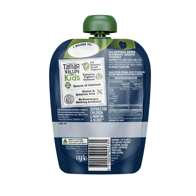Tamar Valley Dairy Kids Blueberry Greek Yoghurt 110GM