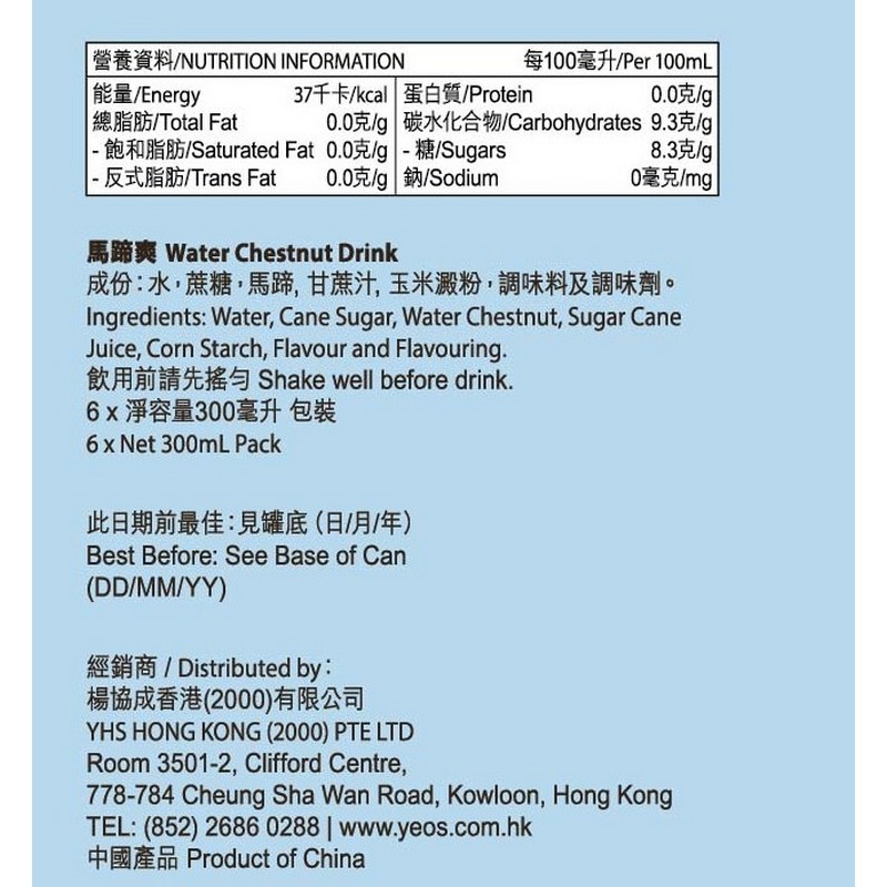 YEO'S WATER CHESTNUT DRINK 6 X 300 ML