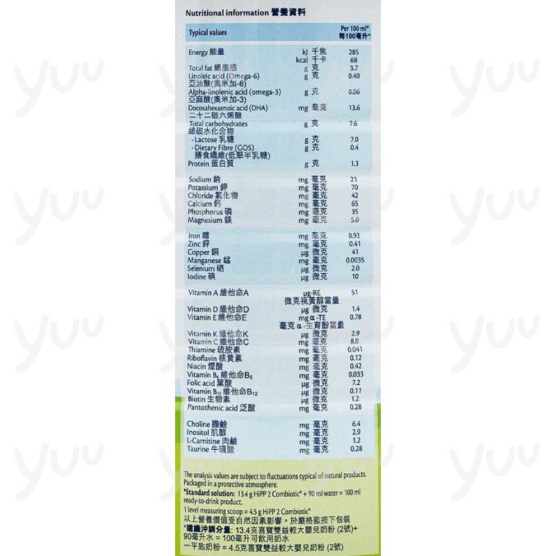 喜寶2號有機雙益較大嬰兒奶粉 800GM
