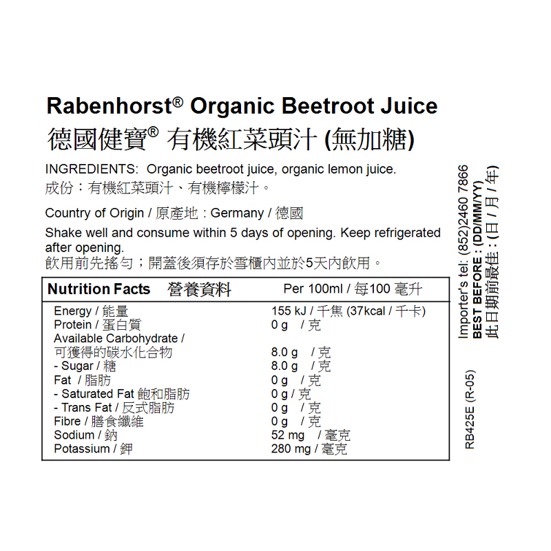 德國健寶100%有機紅菜頭汁 750ML