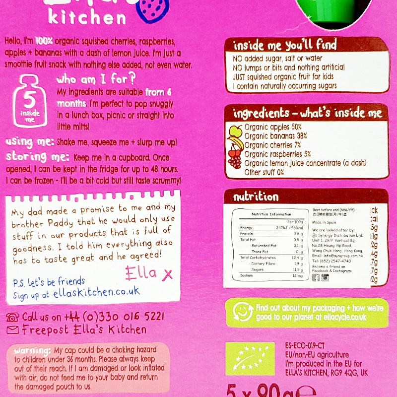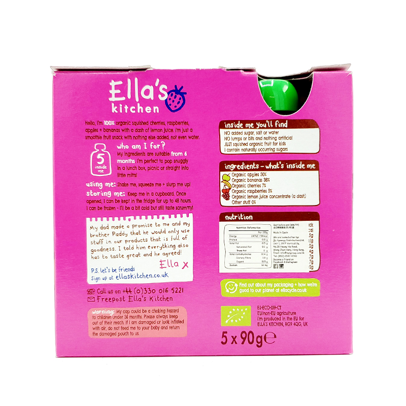 Ella's Kitchen粉紅有機果蓉盒裝 5 X 90GM